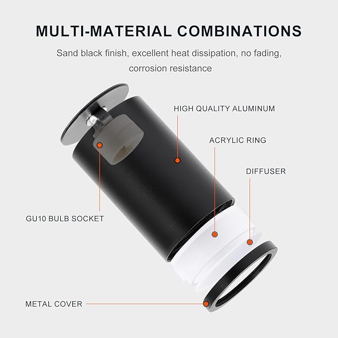 - 【DETACHABLE LIGHT CUP】The design of the track lighting kit has been modified to allow for easy installation and bulb replacement by simply unscrewing the lamp cup. Please read the instruction manual before installing the led spot ceiling light fixture