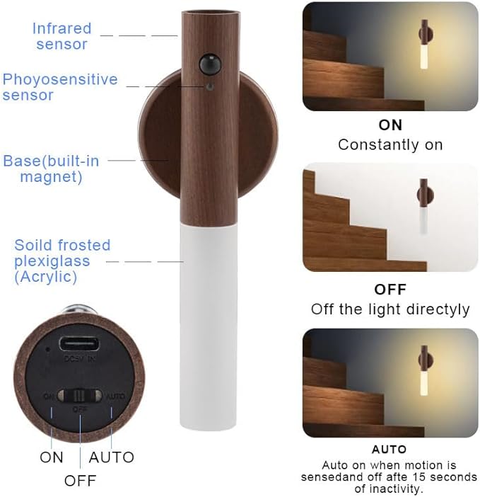 - Automatic Sensor: This motion sensor light is built-in with photosensitive sensors and smart switch control. The light will be turned on for 15 seconds when motion is detected in dark within a 10ft distance.