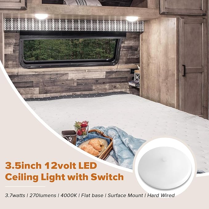 Dream lighting RV Interior LED Lights 12volt Led Dome Ceiling Light with Switch 3.5inch 4000K White Lighting, Pack of 4