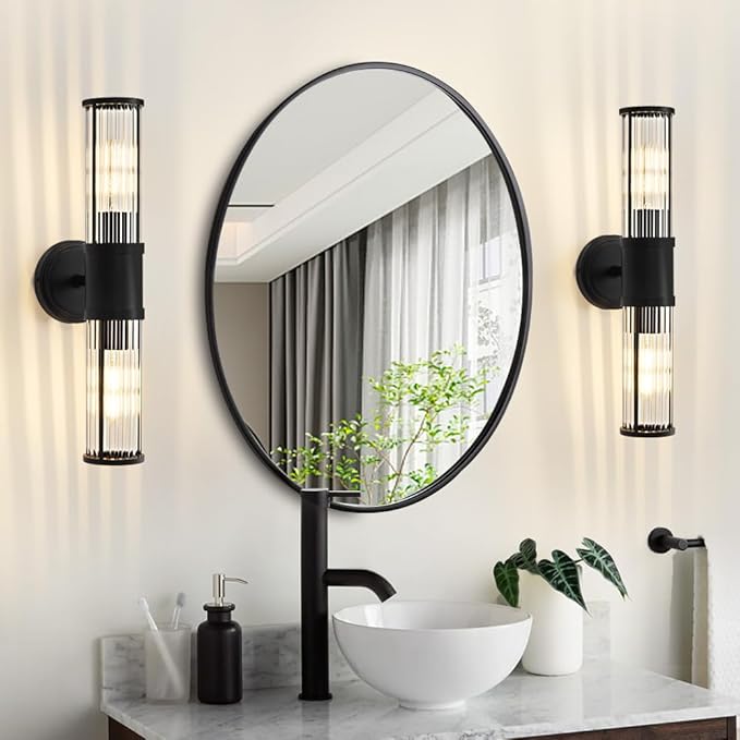 Black Wall Sconce Bathroom Vanity Light Fixtures for Mirror, Modern Wall Light with Glass Rod Shade for Bathroom, Bedroom, Hallway, Living Room - Bulb Not Included