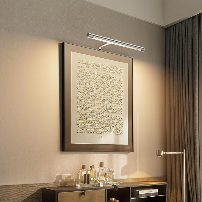 Picture Lights for Paintings Plug in, 16" Adjustable LED Picture Light Art Light with Timer, Remote Control Gallery Painting Wall Light for Picture Display Frame Dartboard Art Work (Nickel)