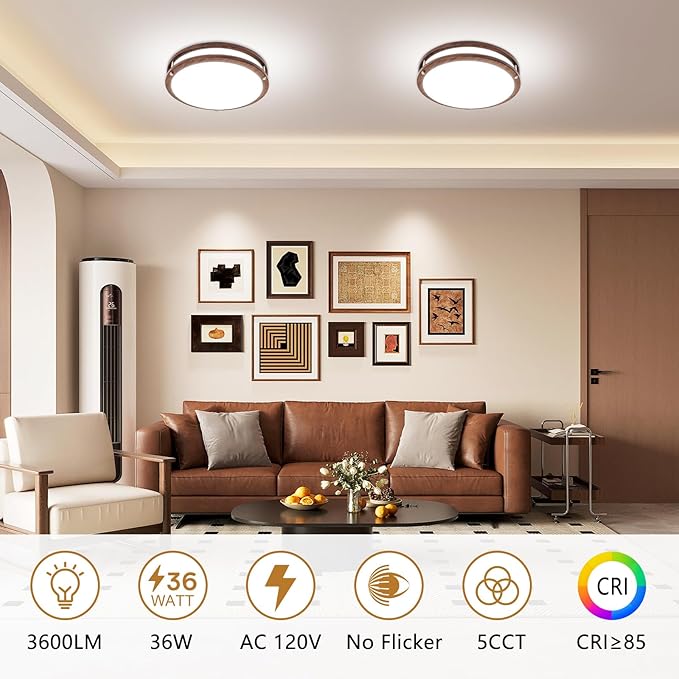 Flush Mount Ceiling Light - 2 Pack 36W 3000K/3500K/4000K/5000K/6000K Dimmable Led Ceiling Light Fixture for Kitchen Hallway Bedroom Bathroom (2, Nussbaum, 12 Inch)