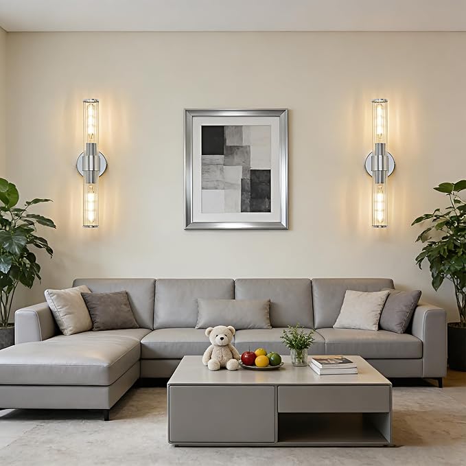Chrome Bathroom Vanity Light, Wall Sconce Threaded Glass 1 Pack, Modern Wall Light for Bathroom, Living Room, Hallway, Kitchen - UL Certification (Bulb Not Included)